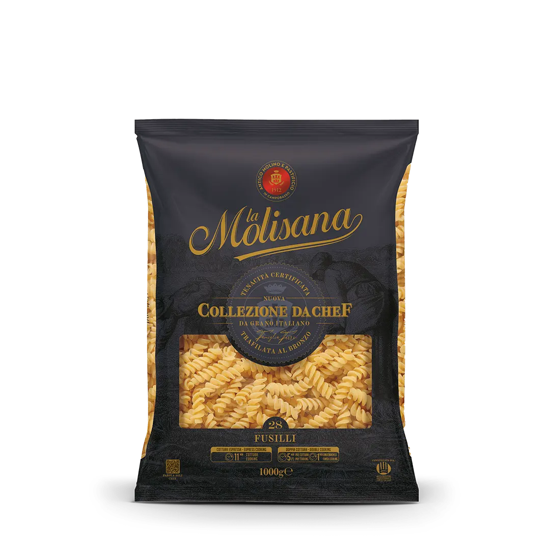 Di origini meridionali i fusilli hanno una lunga storia. Originariamente venivano lavorati con una tecnica manuale tramandata attraverso le generazioni che consisteva nell’arrotolare l’impasto intorno ad un ferro da calza, ottenendo così un tipo di pasta a forma di “fuso”; da qui i nomi di fusilli, eliche, spirali o rotini.