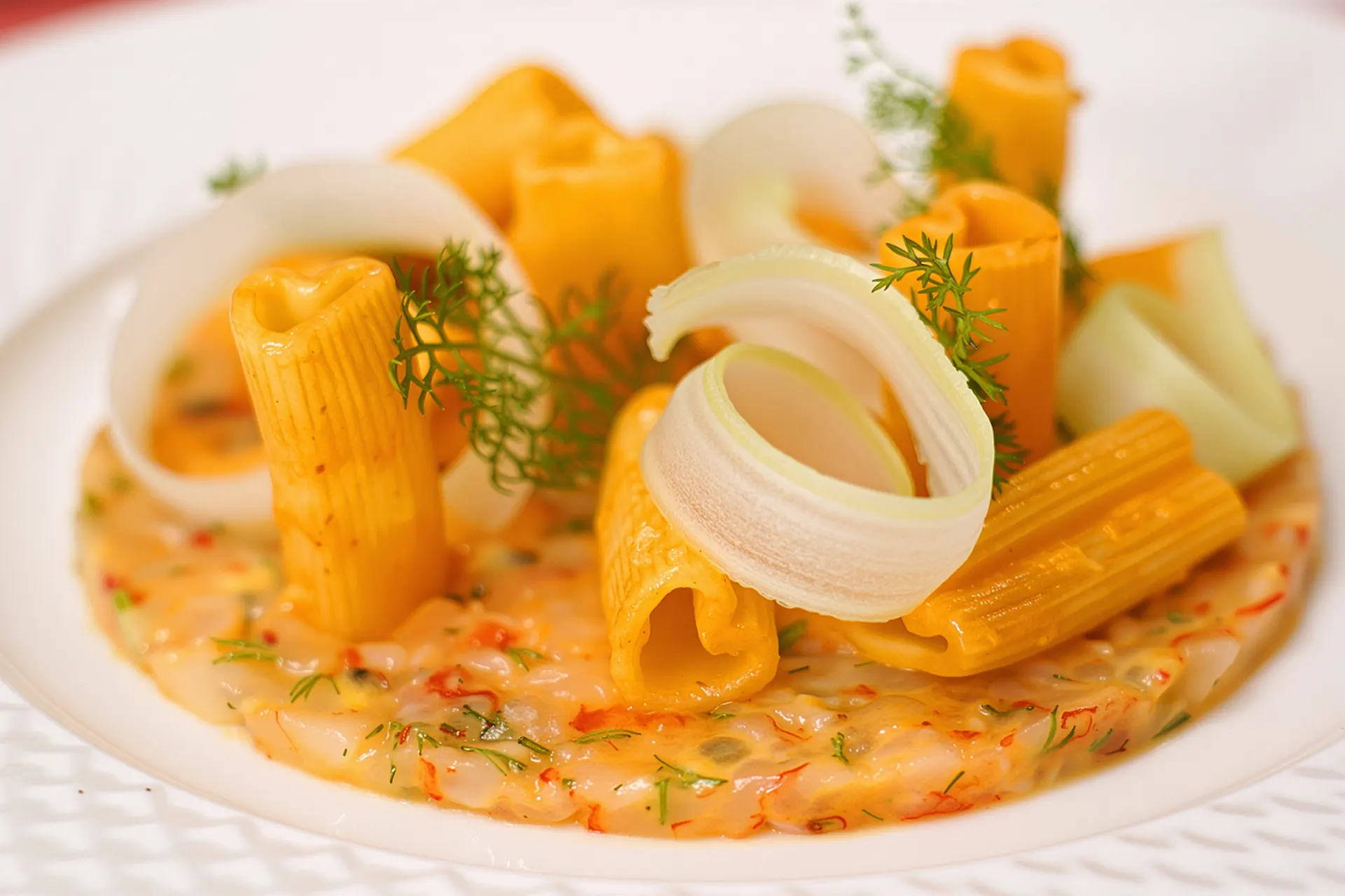 Facilissimo da preparare ma con effetti speciali che sorprenderanno sicuramente il vostro ospite, soprattutto per questo nuovo taglio di pasta a forma di cuore. Gambero rosso, sedano e passion fruit sono gli ingredienti cardini di questa ricetta, utilizzati completamente a crudo per esaltare i suoi sapori al naturale, tra profumi afrodisiaci e note fresche e profumate.