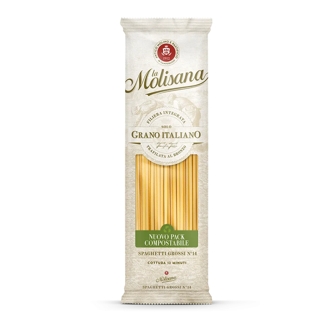 I nostri Spaghetti grossi 14 al bronzo sono un omaggio agli amanti della pasta carnosa, che richiede qualche minuto in più di cottura, ma regala soddisfazioni ai palati più esigenti in fatto di spessore. Presenti in quasi tutte le gamme, gli Spaghetti grossi 14 La Molisana piacciono per la loro deliziosa consistenza: un mix incredibile frutto di equilibrio delle forme, perfetta essiccazione e trafilatura al bronzo, che rendendo la superficie rugosa, crea le condizioni per una perfetta aderenza dei condimenti.