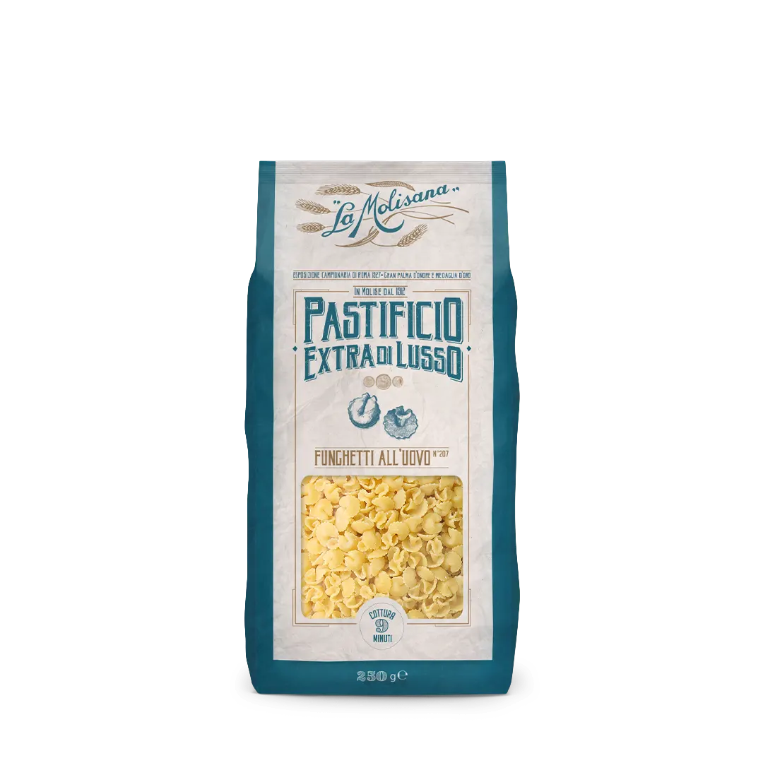 I Funghetti 207 conquistano per la loro forma giocosa e armoniosa. La curvatura centrale raccoglie salse cremose, mentre l’uovo regala un profumo sottile e una consistenza vellutata. Perfetti con condimenti delicati, esprimono la parte più creativa della pasta all’uovo. Provali con purea di verza e pancetta croccante: un abbraccio tra dolcezza e carattere.