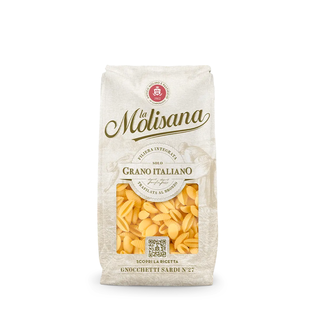 Anche gli Gnocchetti sardi 27 de La Molisana hanno un aspetto deliziosamente panciuto e rappresentano uno dei pezzi forti del pastificio molisano, per la perfetta combinazione di consistenza, dimensione e ruvidità.